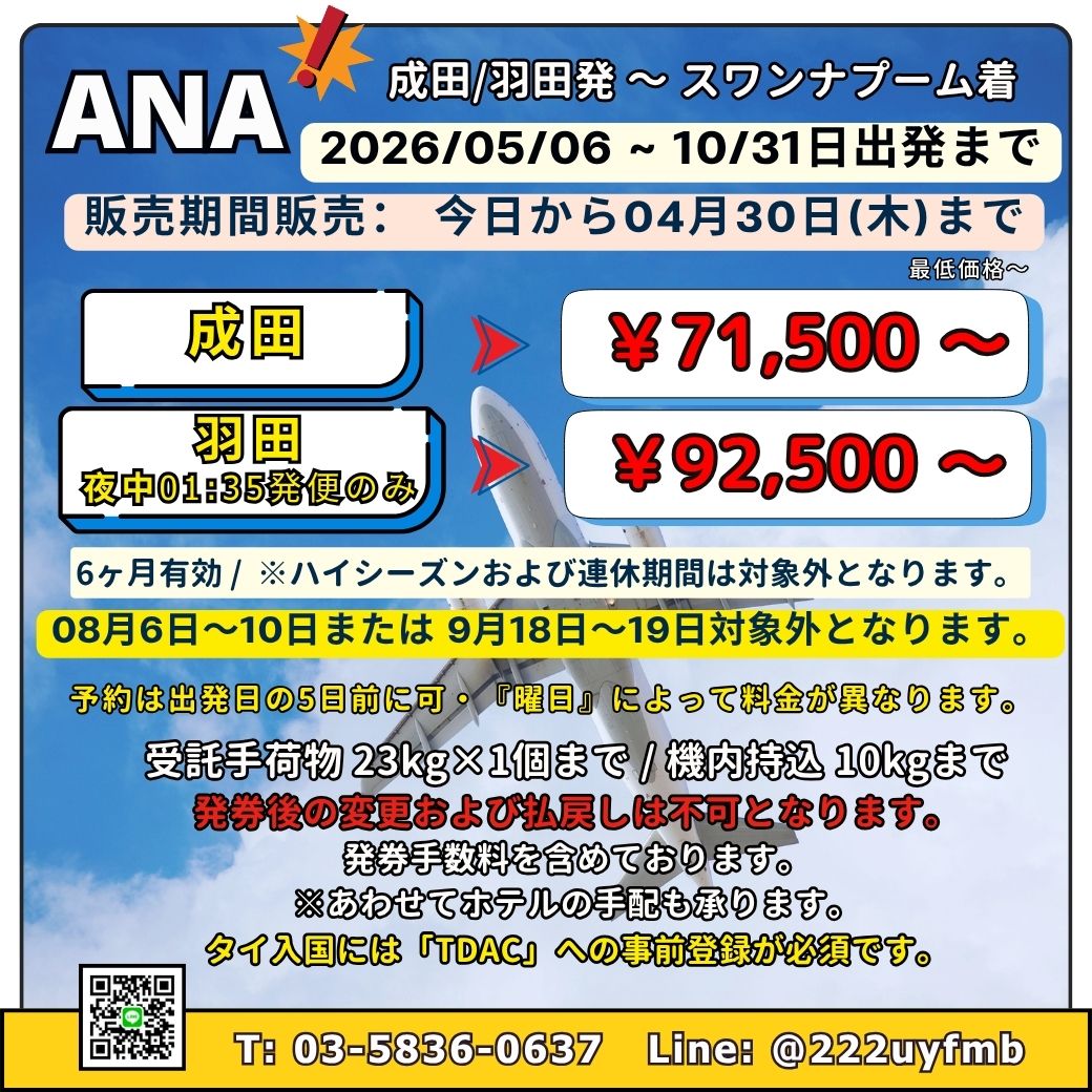 タイへの帰省航空券はこちら